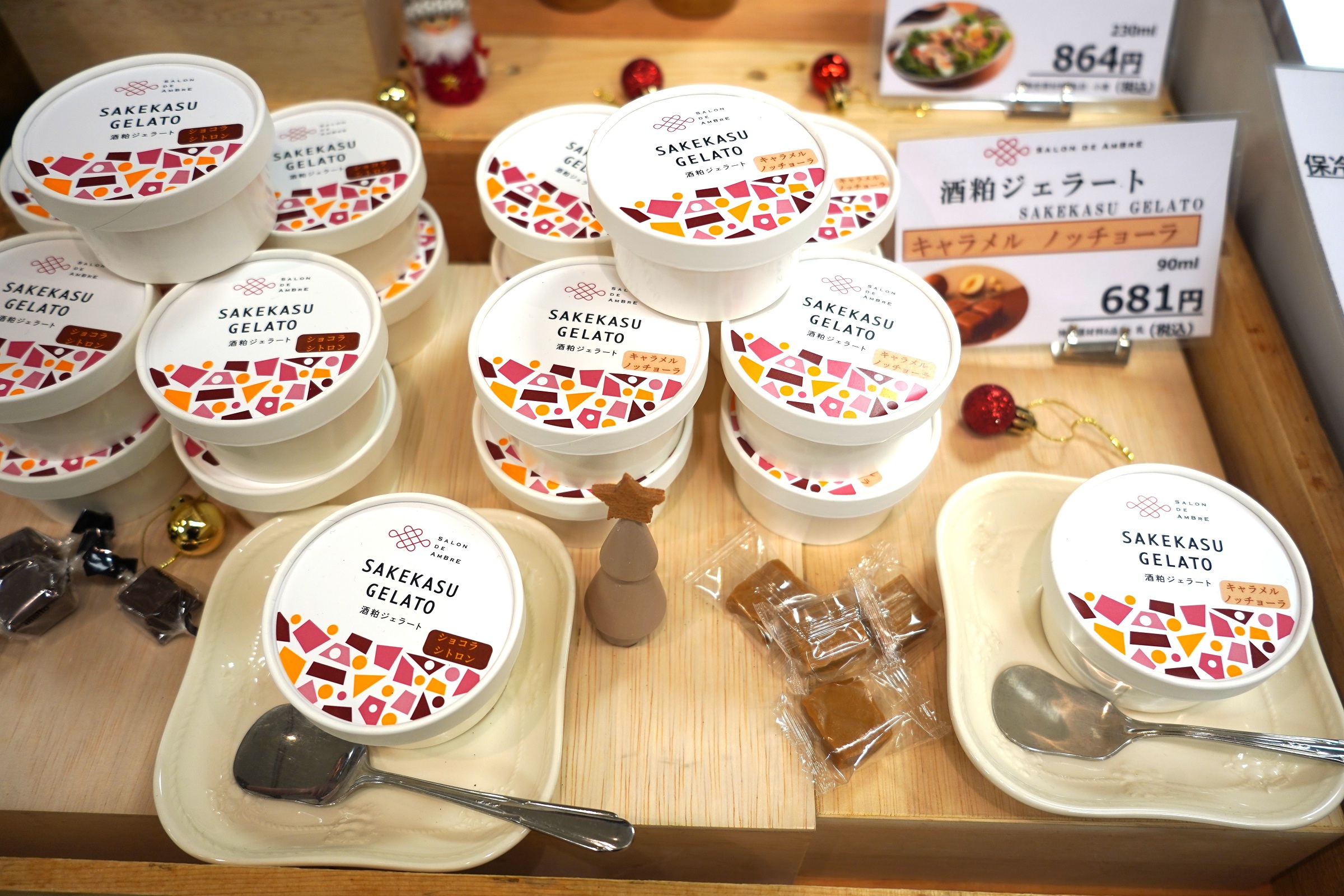 コラボ企画の『酒粕ドレッシング』と『酒粕ジェラート』の