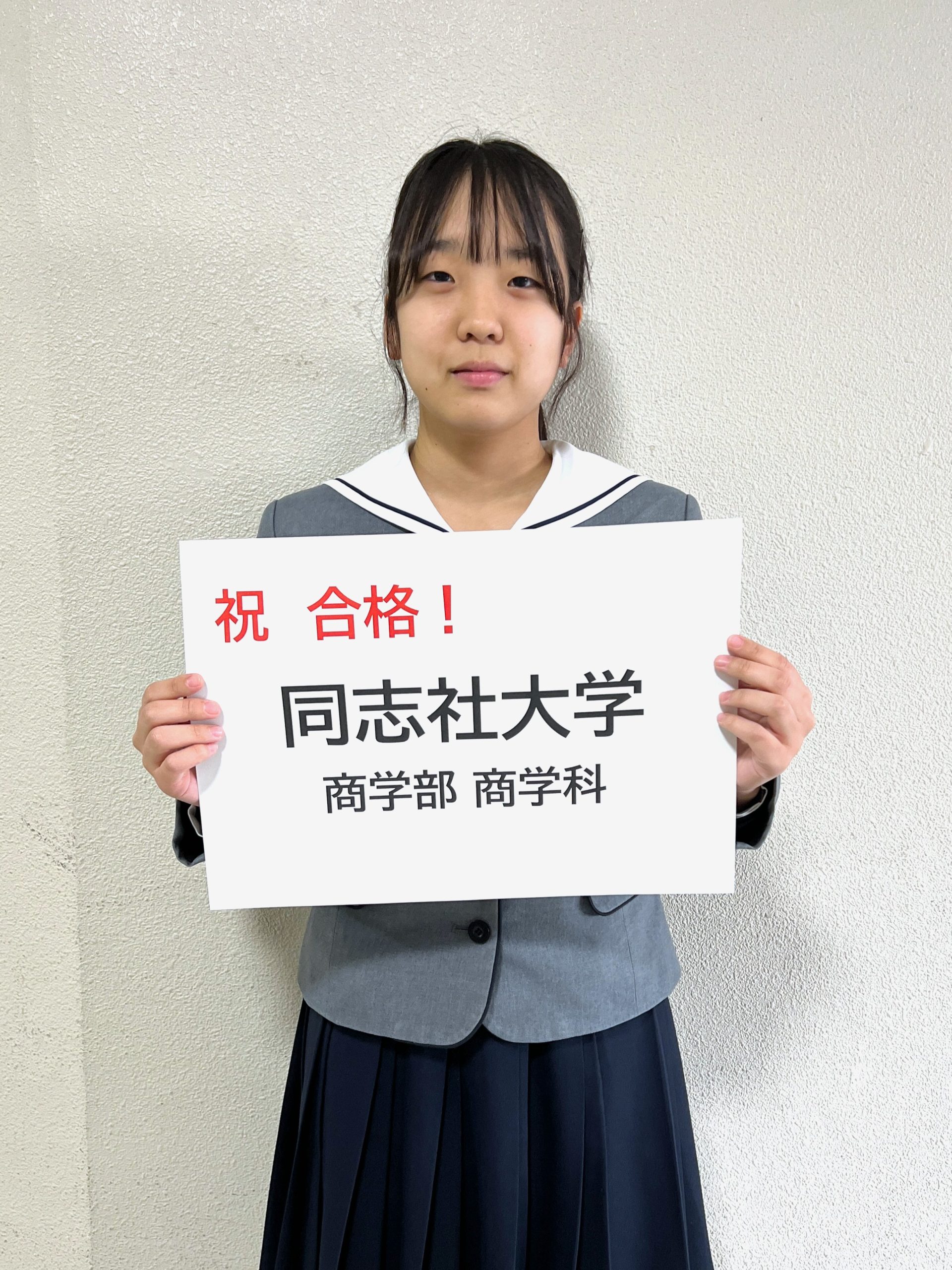 「支えてくださった先生方、家族、友人達のおかげで合格することができました。自分の夢に向かって大学生活楽しみたいと思います」
