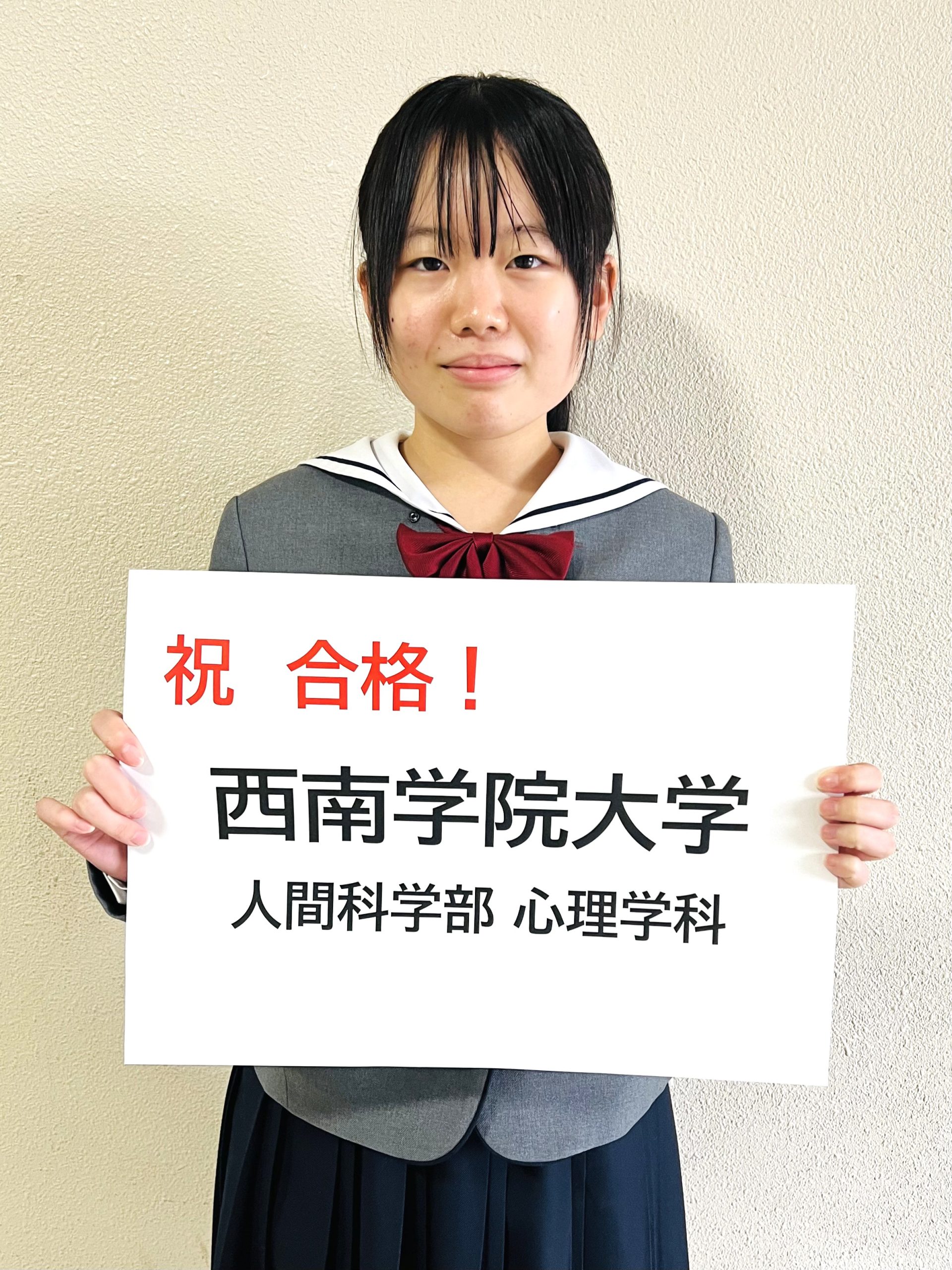 「合格を勝ちとれたのは、最後まで諦めず、勉強に取り組めた結果だと思います。何度も行った小論文や面接の練習で背中をおしていただいた先生方に感謝の気持ちでいっぱいです。ありがとうございました」
